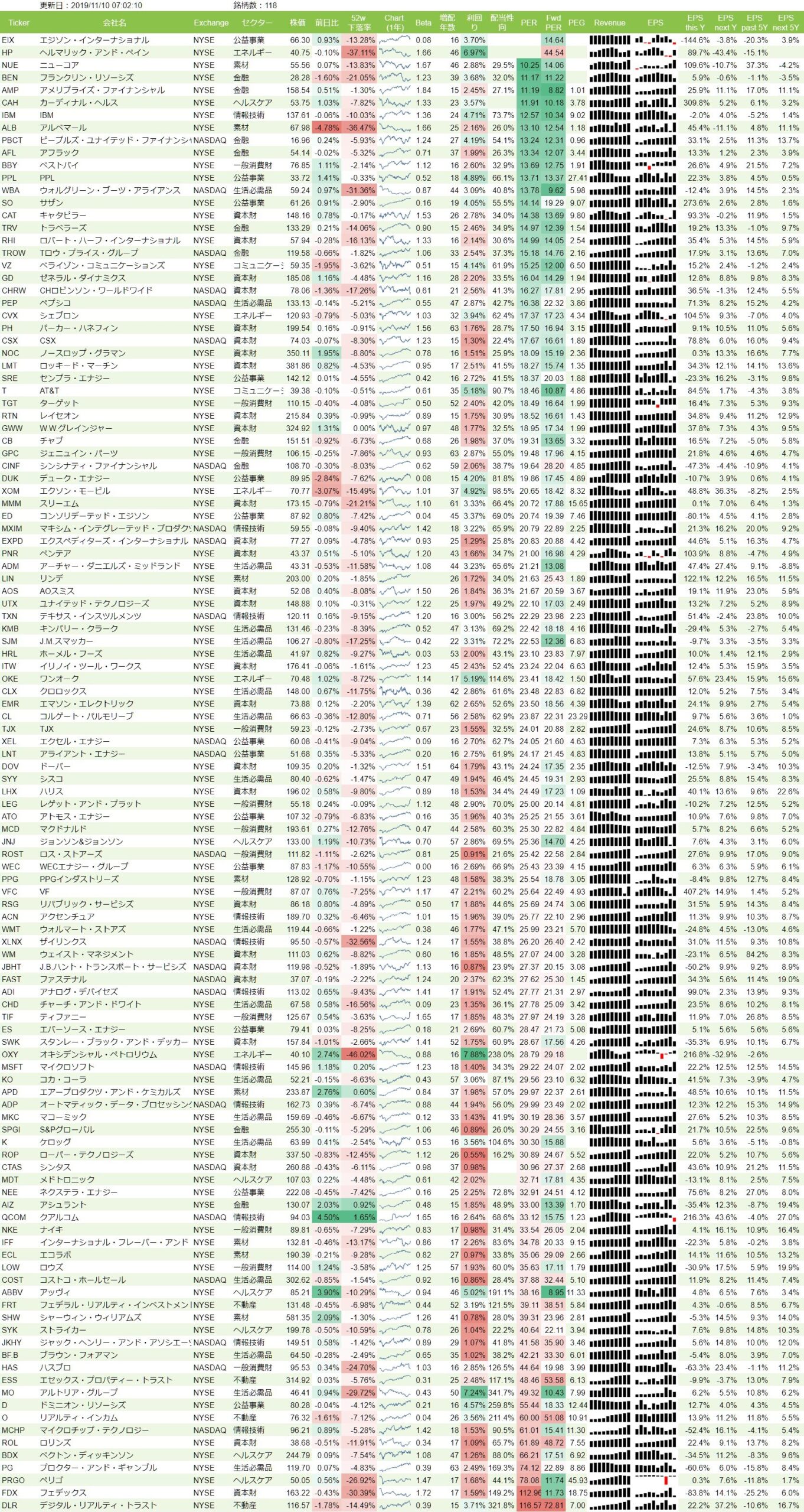2019年11月10日時点のS&P500構成銘柄で15年以上増配している銘柄の株価やPER、売上やEPSの推移などをご紹介します。